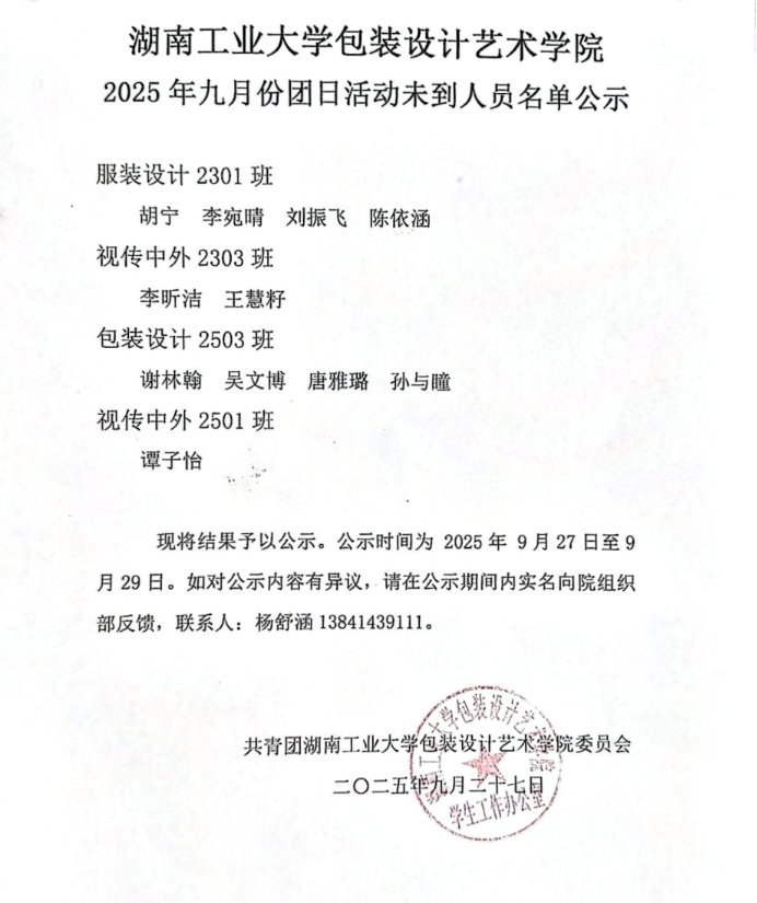 为全面贯彻我校教育教学方针,切实维护良好的教学秩序,助力提升教学质量,精准掌握课堂实时动态的同时为师生创造一个有序,高效的教学环境,现公布2025年学年第一学期九月份团日活动到场情况。公示名单已在崇美楼二楼公示处公示。